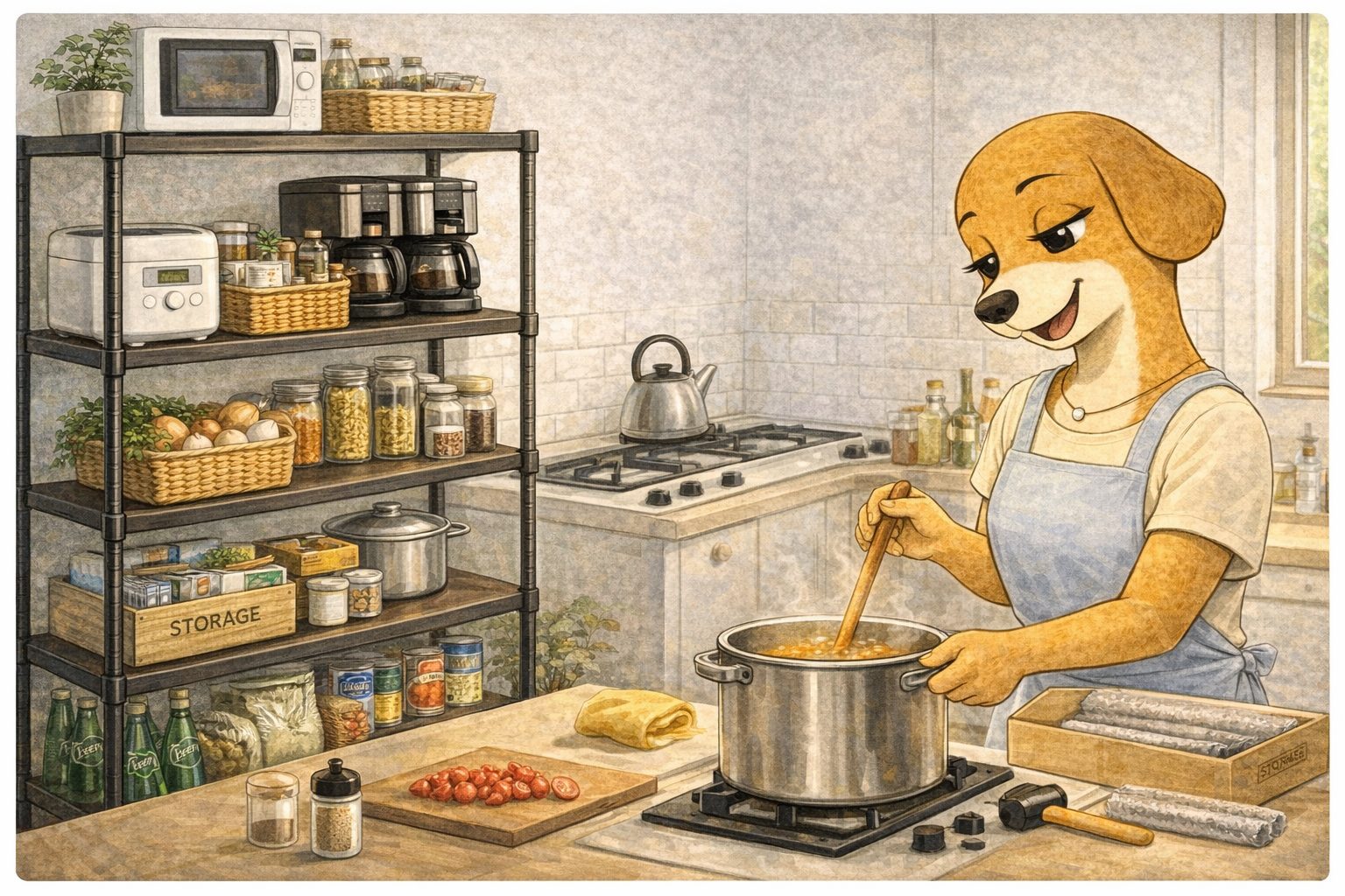 鍋や家電、ストック品を載せても不安なし。日常使いとしては、十分すぎる安定感です。